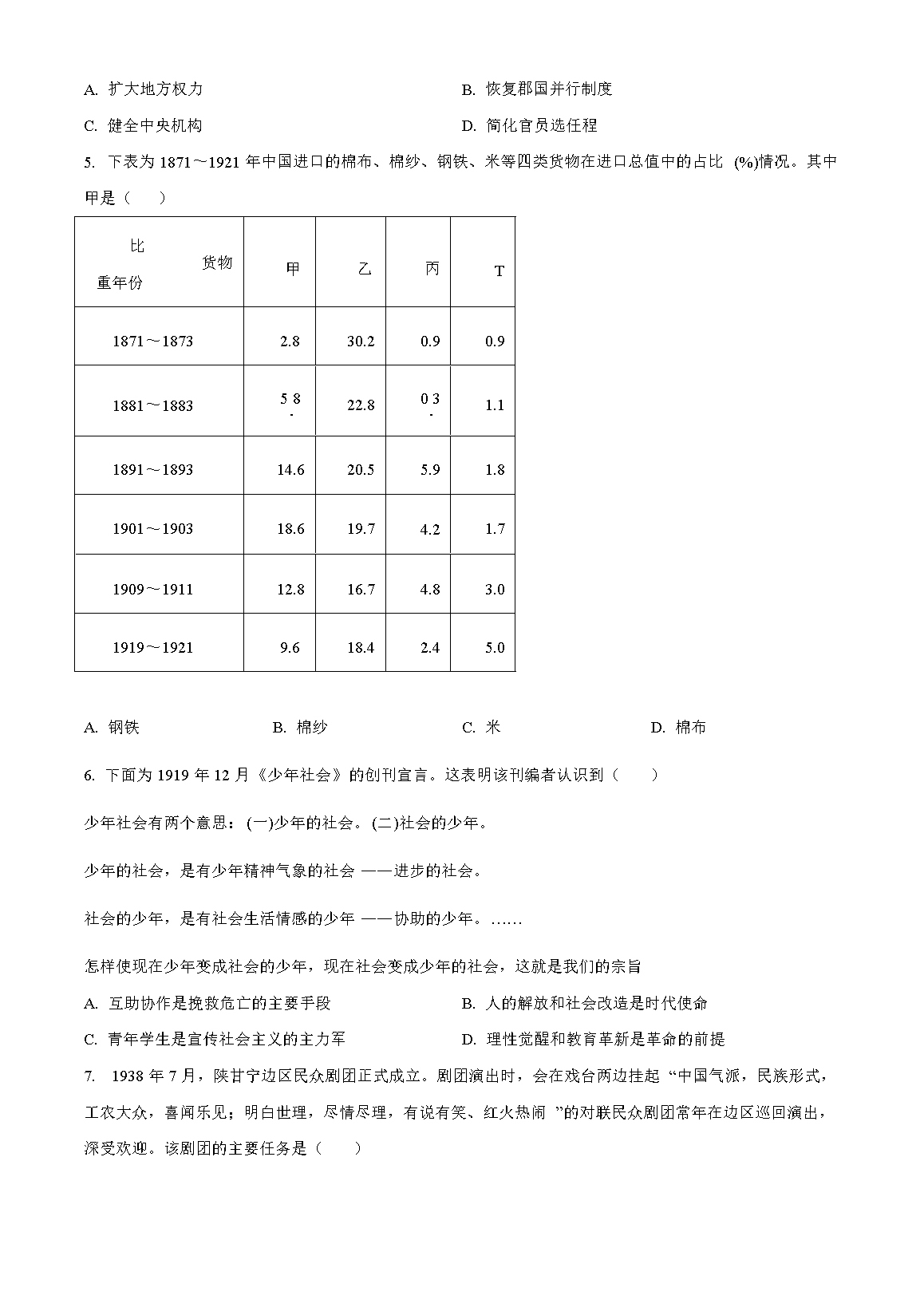 2023年山东学考等级考试历史真题及答案(Word版)06-26
