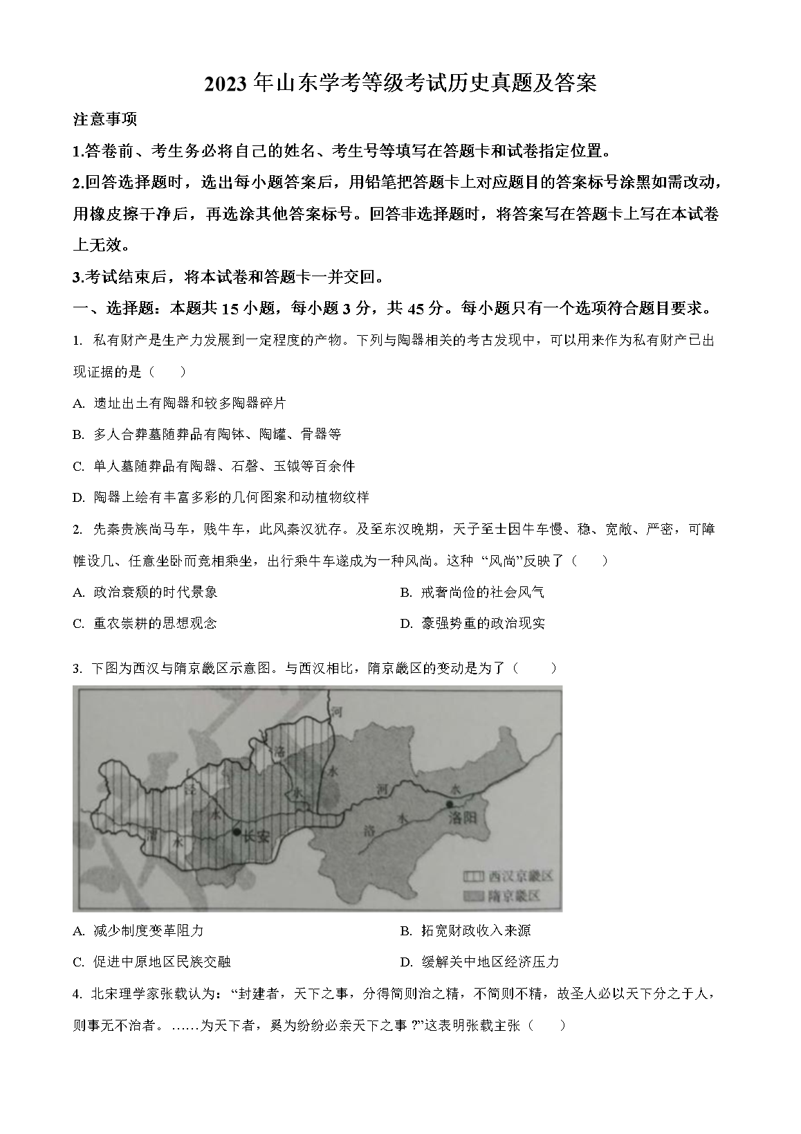 【文档预览】 文档大全网整理发布2023年山东学考等级考试历史真题及答案(Word版),前五页预览如下: