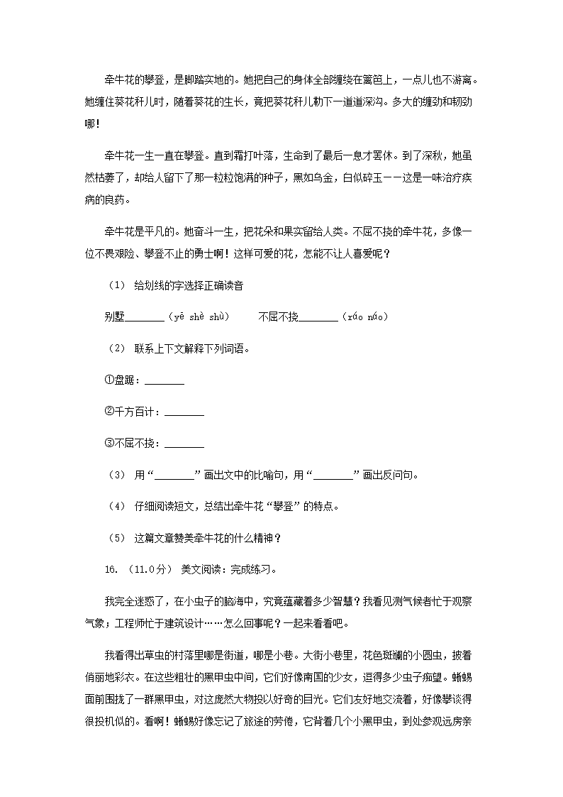 【文档预览】 文档大全网整理发布2021年内蒙古乌海六年级上册语文期末试卷及答案(Word版),前五页预览如下: