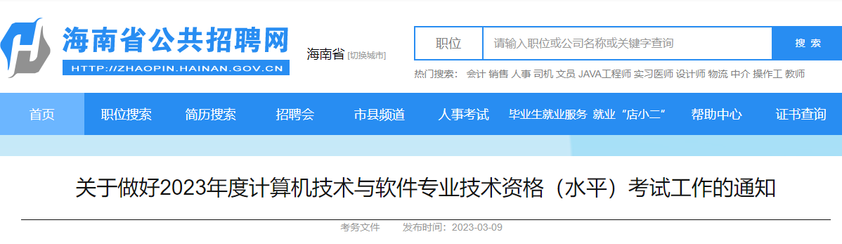 2023年海南计算机技术与软件专业技术资格(水平)考试工作通知03-22