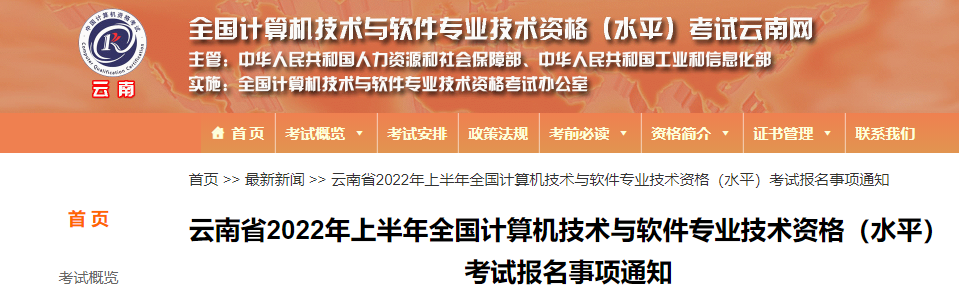 2022年上半年全国计算机技术与软件专业技术资格(水平)考试(初级、中级、高级)将于5月28、29日举行,现将云南省2022年上半年考试报名具体事项通知如下。