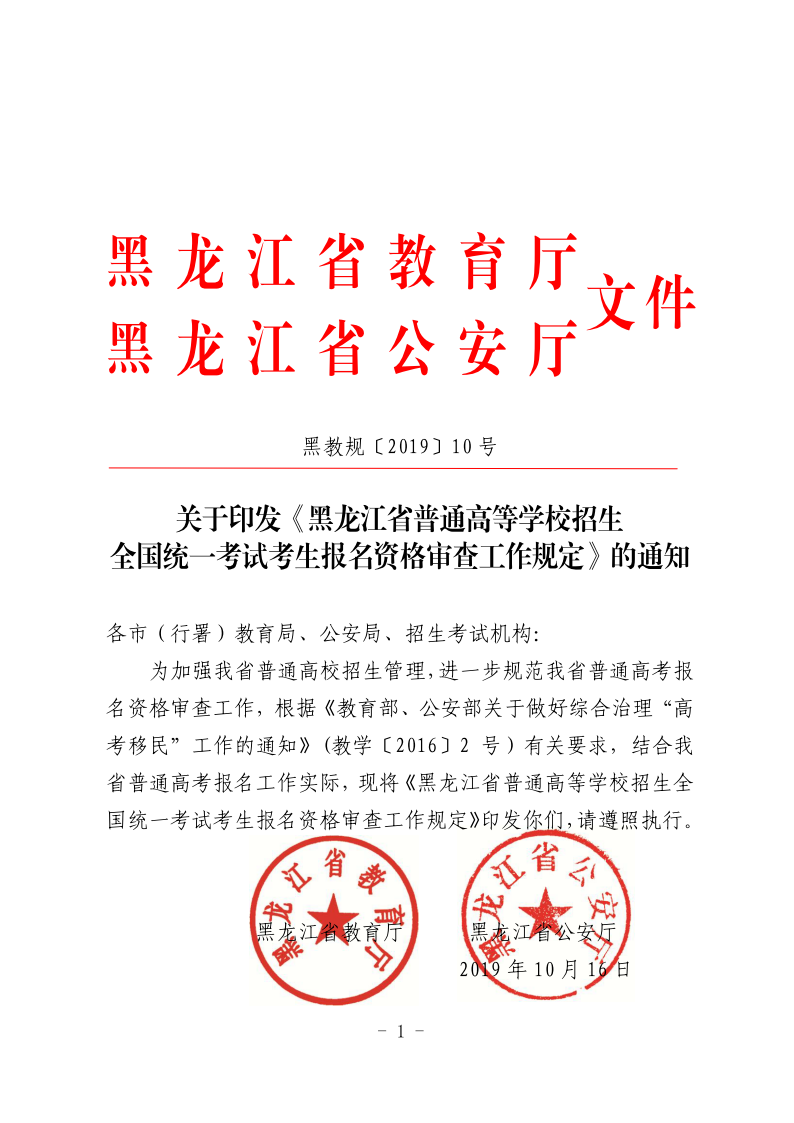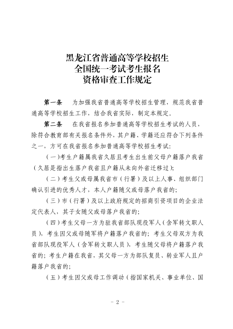 原文标题:关于印发《黑龙江省普通高等学校招生全国统一考试考生报名资格审查工作规定》的通知