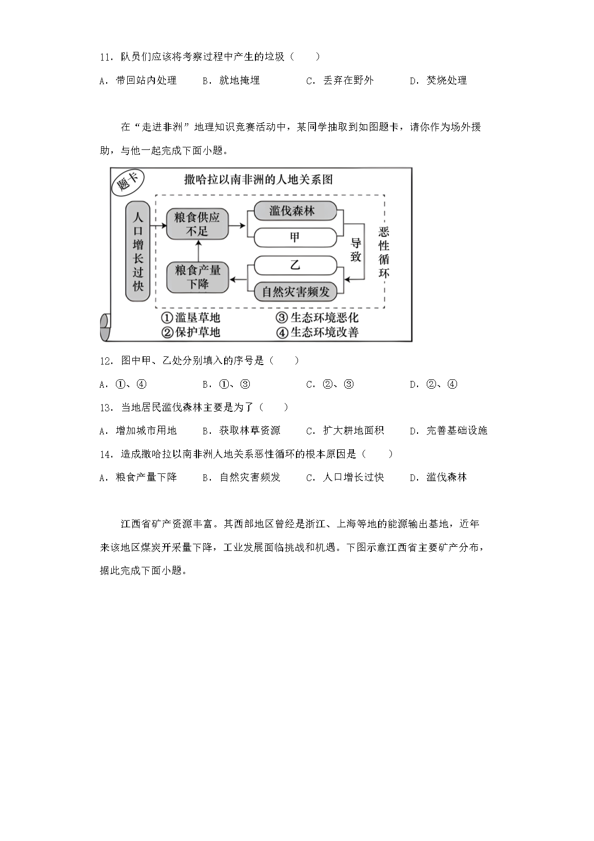 2023年江西中考地理试题及答案(Word版)07-01