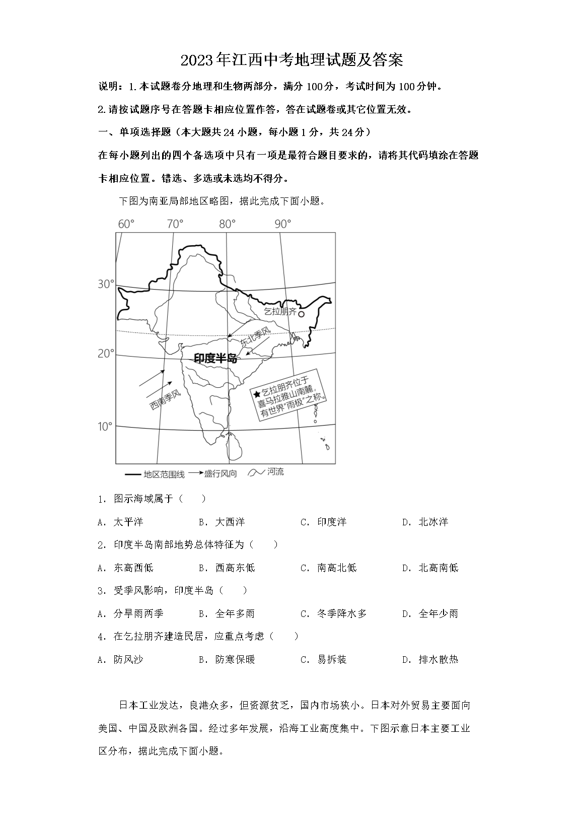 【文档预览】 文档大全网整理发布2023年江西中考地理试题及答案(Word版),前五页预览如下:
