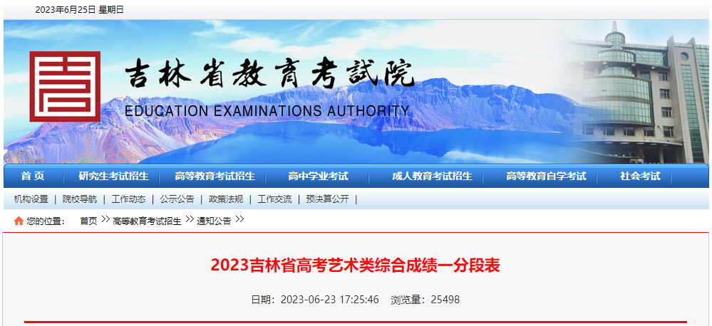 【#高考# 导语】®文档大全网从吉林省教育考试院了解到,2023年吉林省高考艺术类综合成绩一分段表已公布,相关事宜如下: