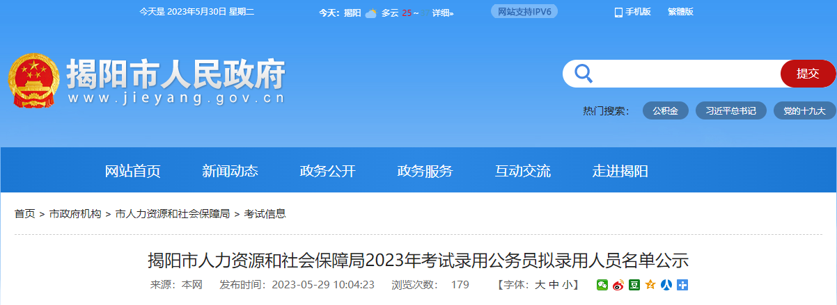 【#公务员考试# 导语】©文档大全网从揭阳市人力资源和社会保障局了解到,2023年广东揭阳市人力资源和社会保障局考试录用公务员拟录用人员公示时间:5月30日-6月5日,相关事宜如下: