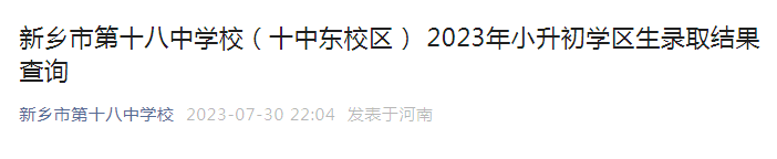 河南新乡市第十八中学校(十中东校区)2023年小升初学区生录取结果查询方式08-02