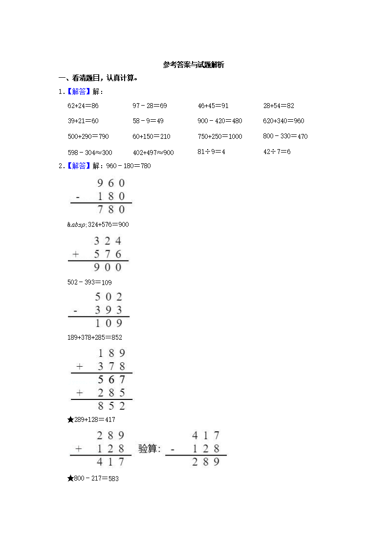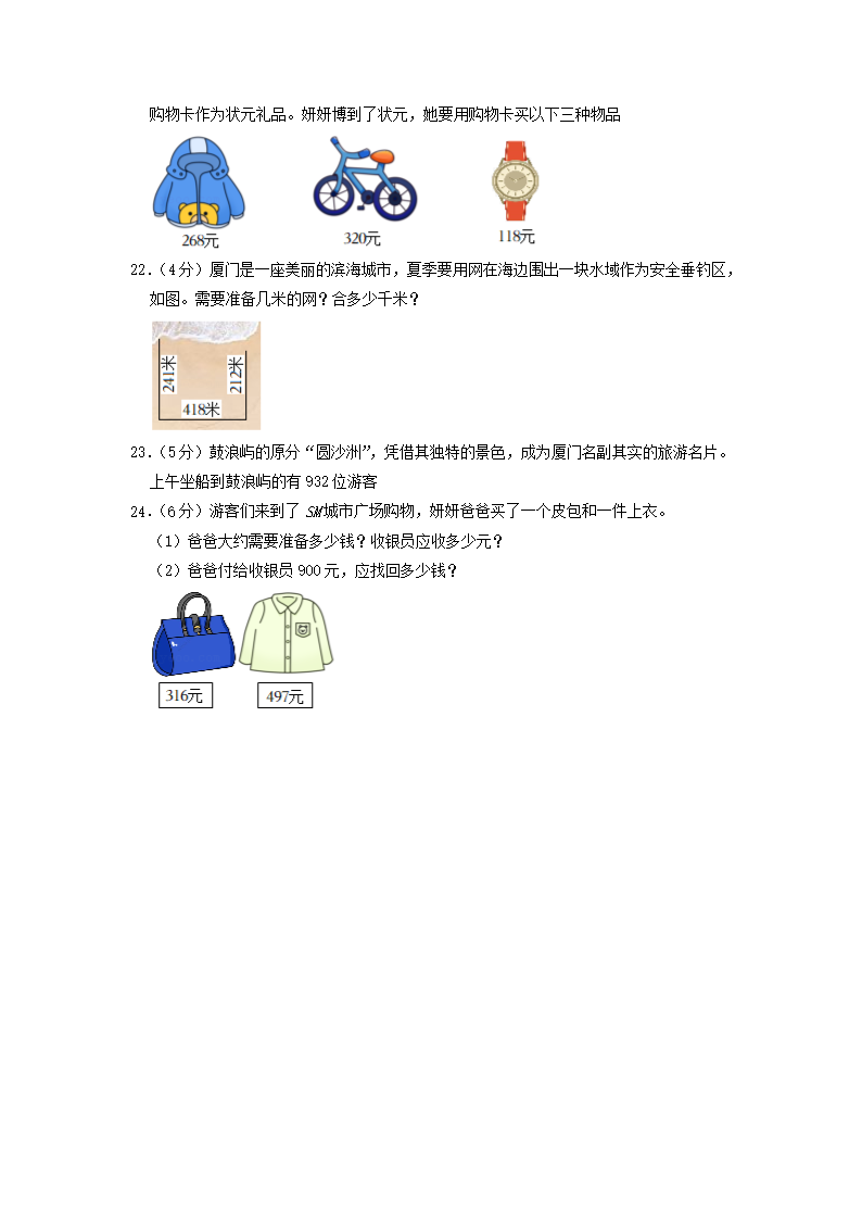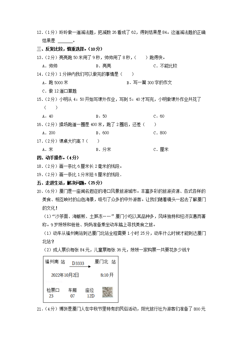 2022-2023学年福建省厦门市宁宝片区三年级上学期期中数学试卷及答案(Word版)09-14