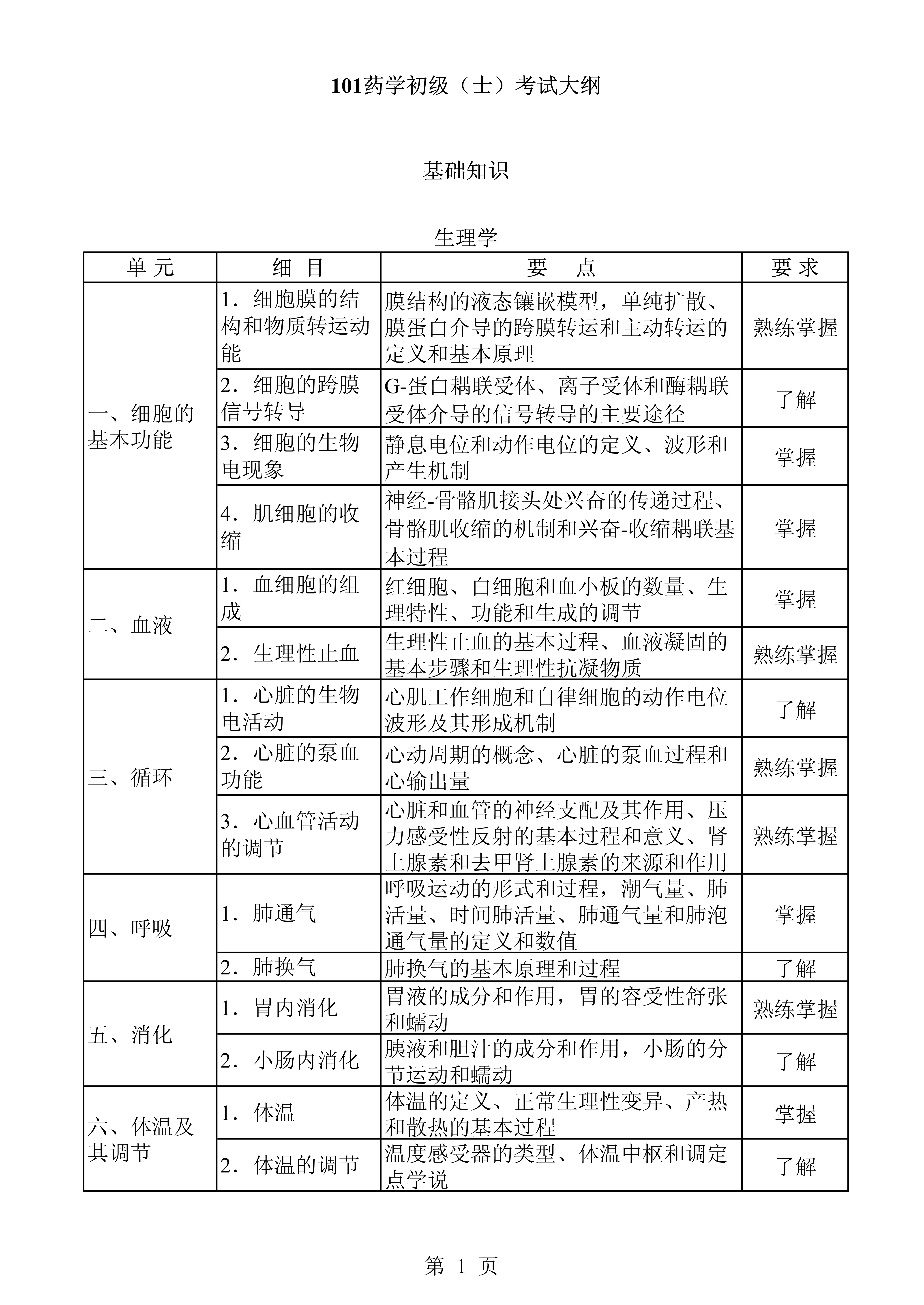 2022年卫生专业技术资格考试大纲-(药士)基础知识08-28