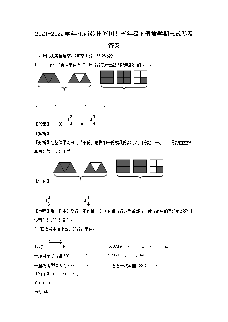 2021-2022学年江西赣州兴国县五年级下册数学期末试卷及答案(Word版)09-28