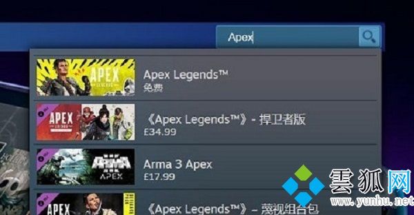 2、不过目前Apex是锁国区的,国内账号和国内IP在steam直接搜索是搜不到Apex的;
