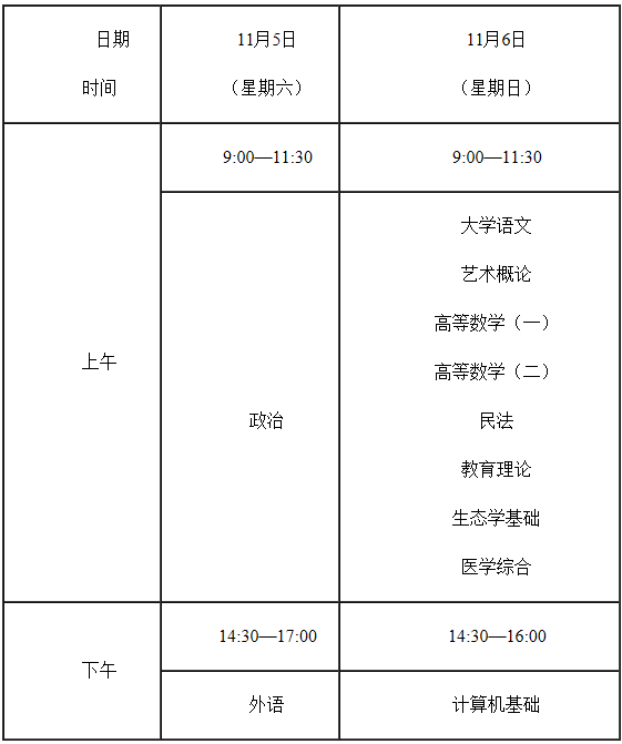 (3)专升本考试科目按照专业所属的学科门类确定。