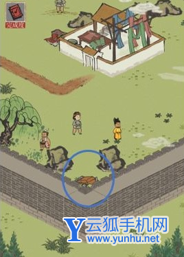 第一家商店后面的角落那里,可能会有树遮住,要砍树进去。
