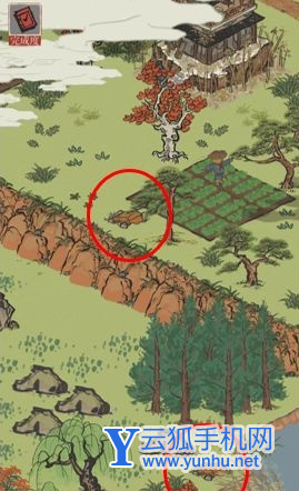这里的两个宝箱离得还是比较近的,第一个女娲庙的镜头往右拉就能看见两个宝箱的位置了,位置如下图所示:
