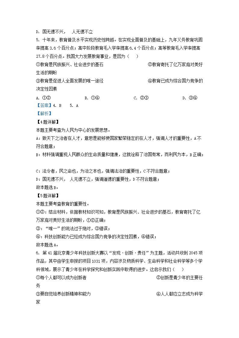 2022-2023学年北京海淀区初三第一学期道德与法治期中试卷及答案(Word版)08-02