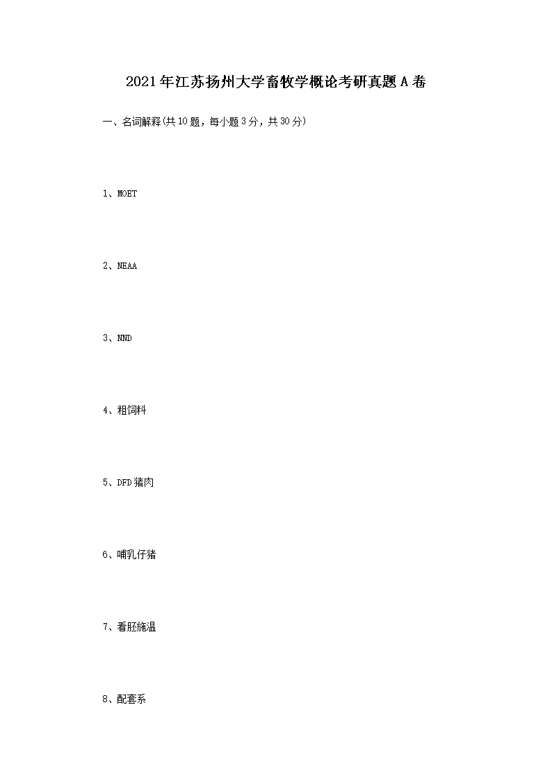 2021年江苏扬州大学畜牧学概论考研真题A卷(Word版)08-30