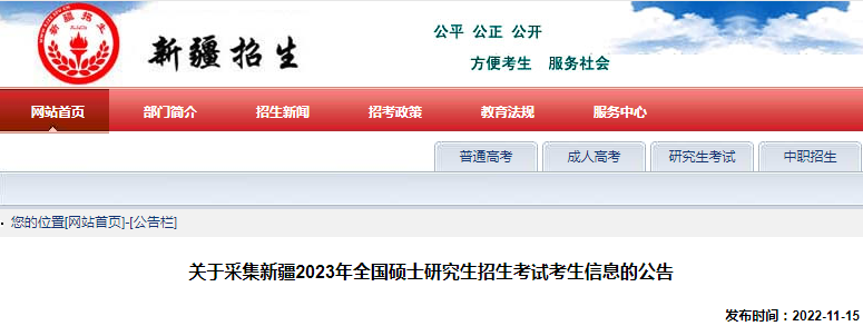 关于采集新疆2023年全国硕士研究生招生考试考生信息的公告11-16