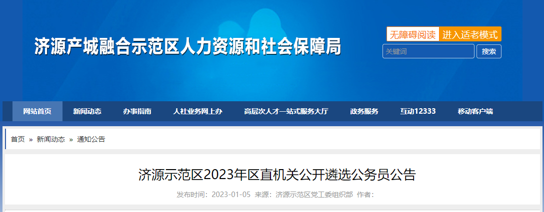 原文标题:济源示范区2023年区直机关公开遴选公务员公告