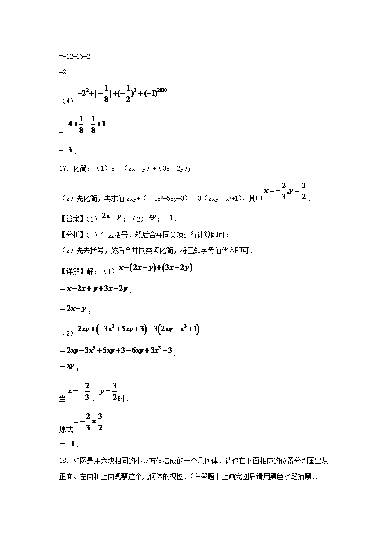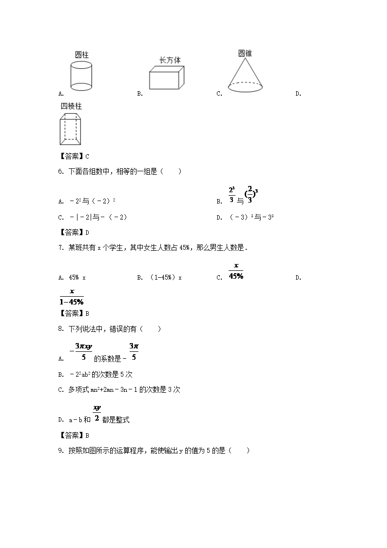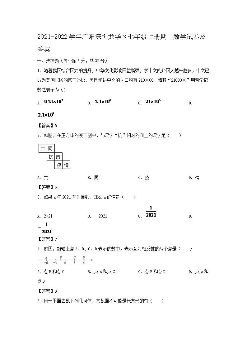 2021-2022学年广东深圳龙华区七年级上册期中数学试卷及答案(Word版)09-22
