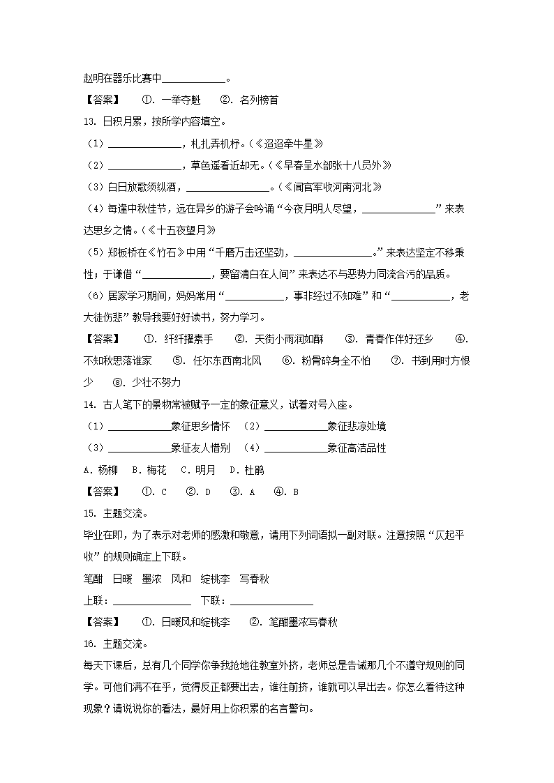 2022山东枣庄市中区小升初语文真题及答案(Word版)09-21