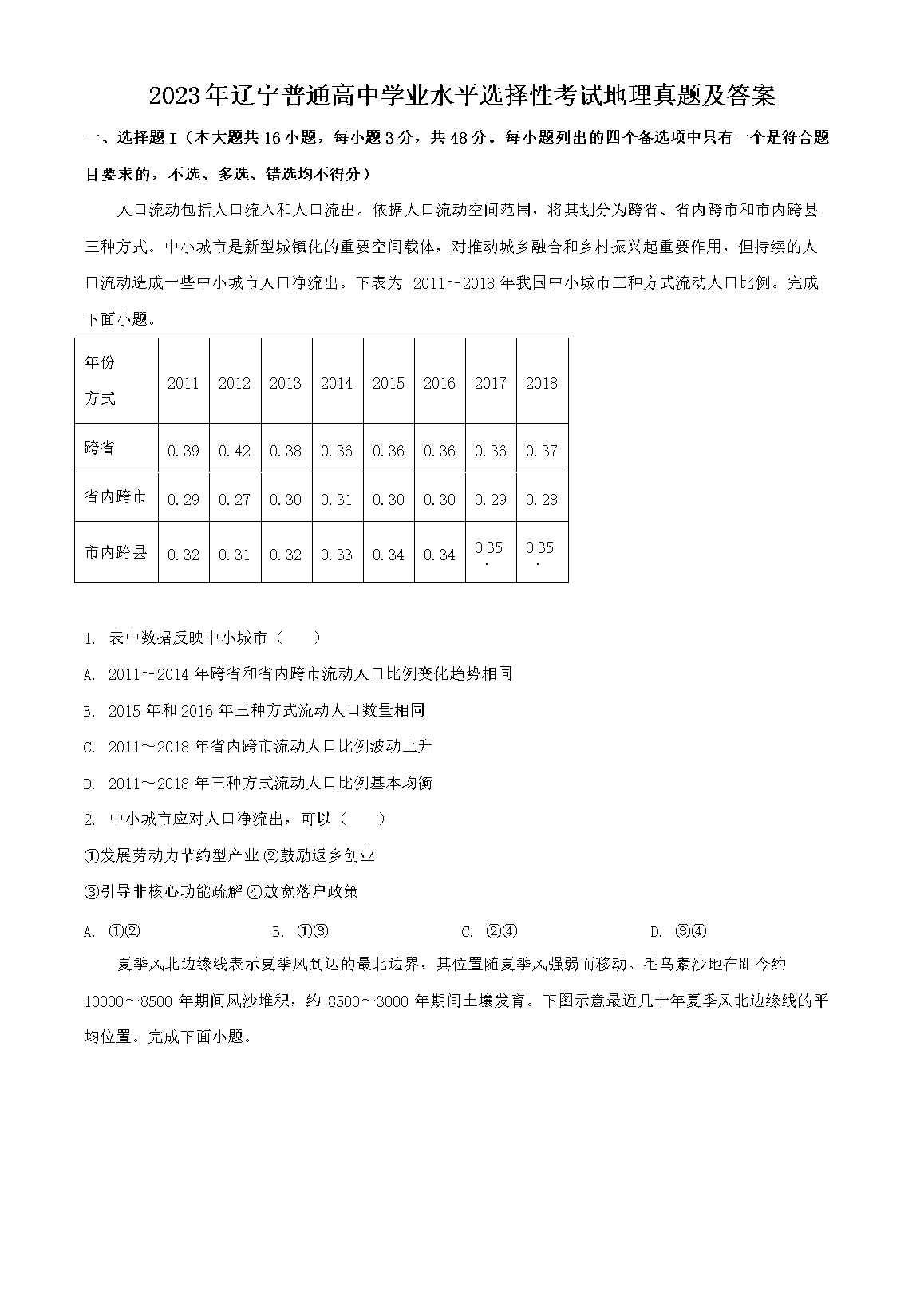 2023年辽宁学考选择性考试地理真题及答案(Word版)10-09