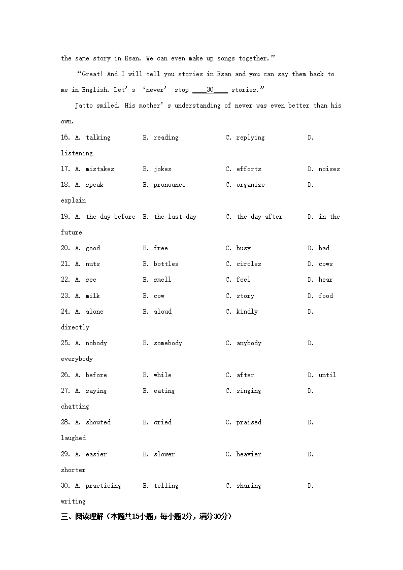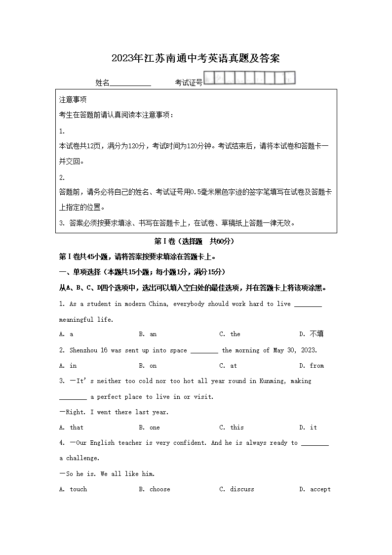 2023年江苏南通中考英语真题及答案(Word版)09-28