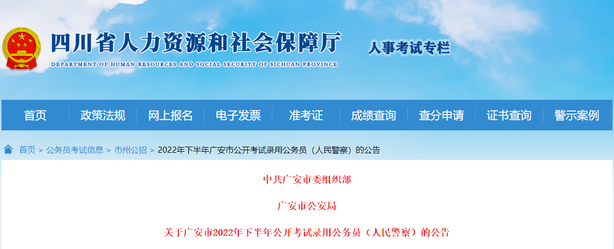 原文标题:关于广安市2022年下半年公开考试录用公务员(人民警察)的公告
