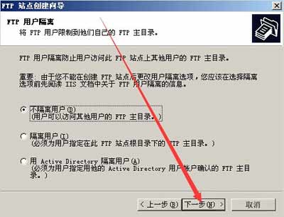 4、进入FTP站点创建向导页面,点击下一步。