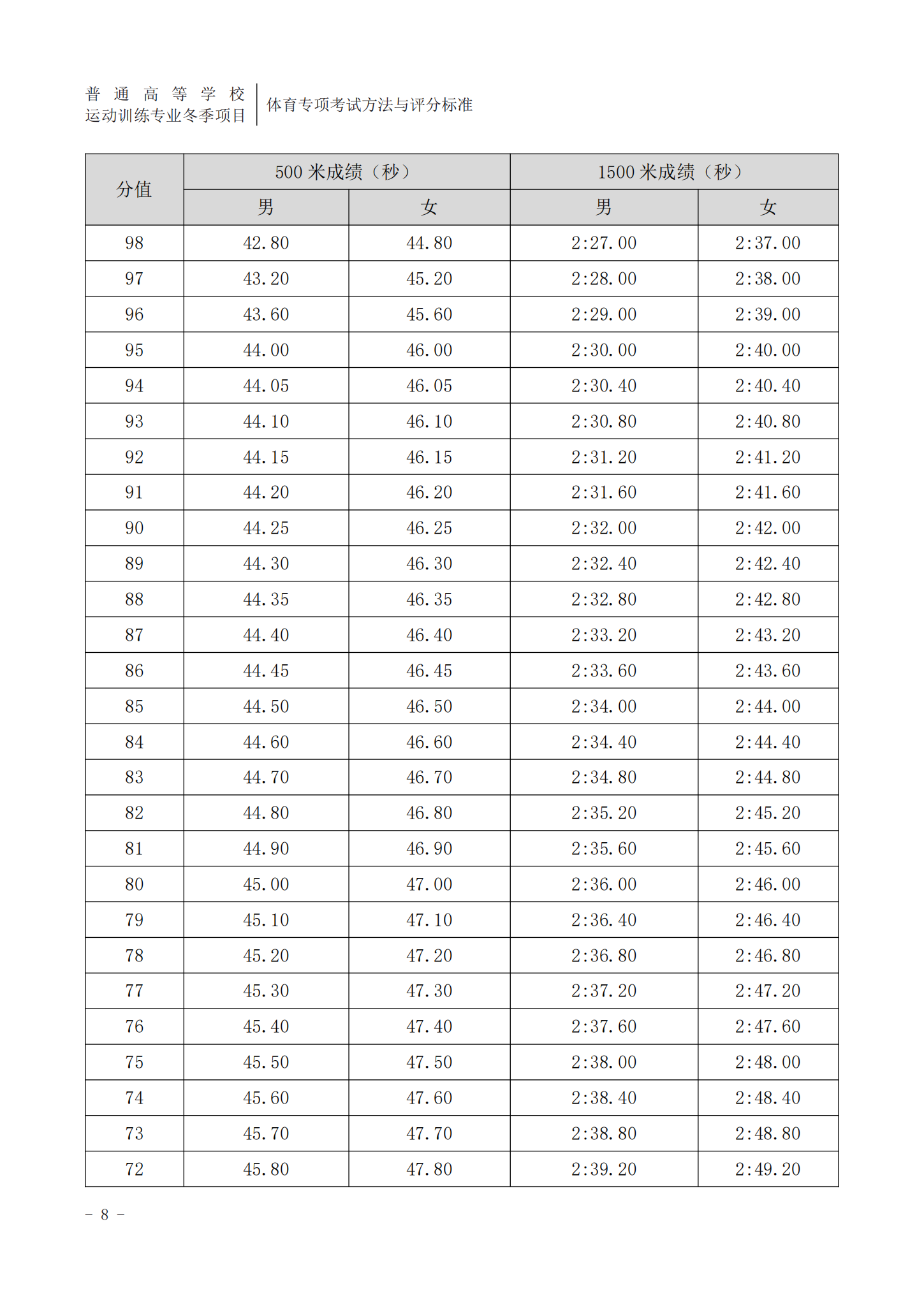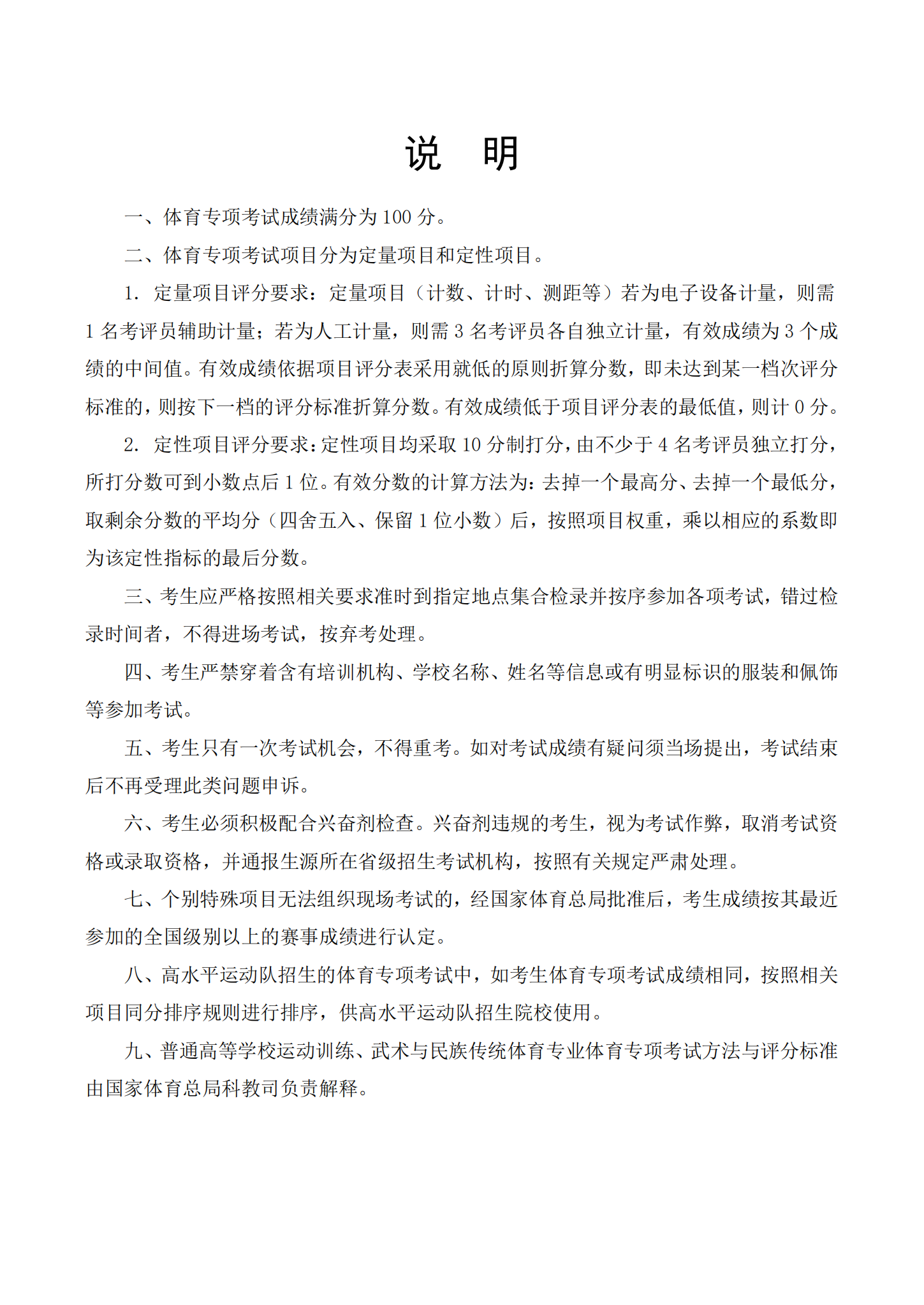 点击查看完整版:普通高等学校运动训练、武术与民族传统体育专业体育专项考试方法与评分标准(2022版)