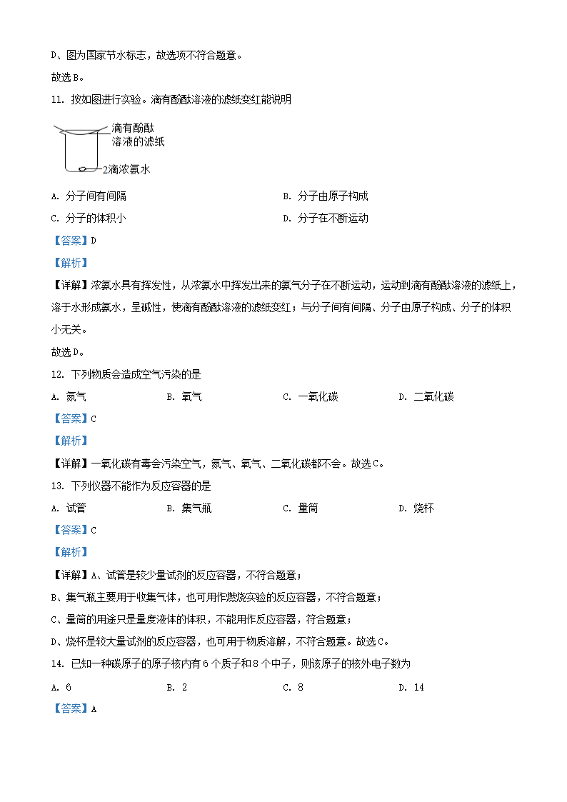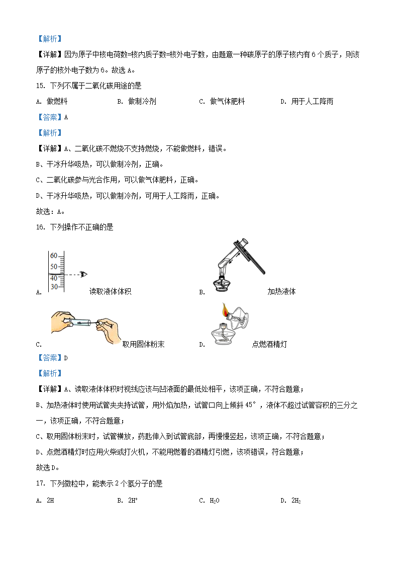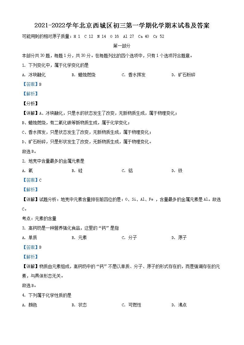 2021-2022学年北京西城区初三第一学期化学期末试卷及答案(Word版)07-14