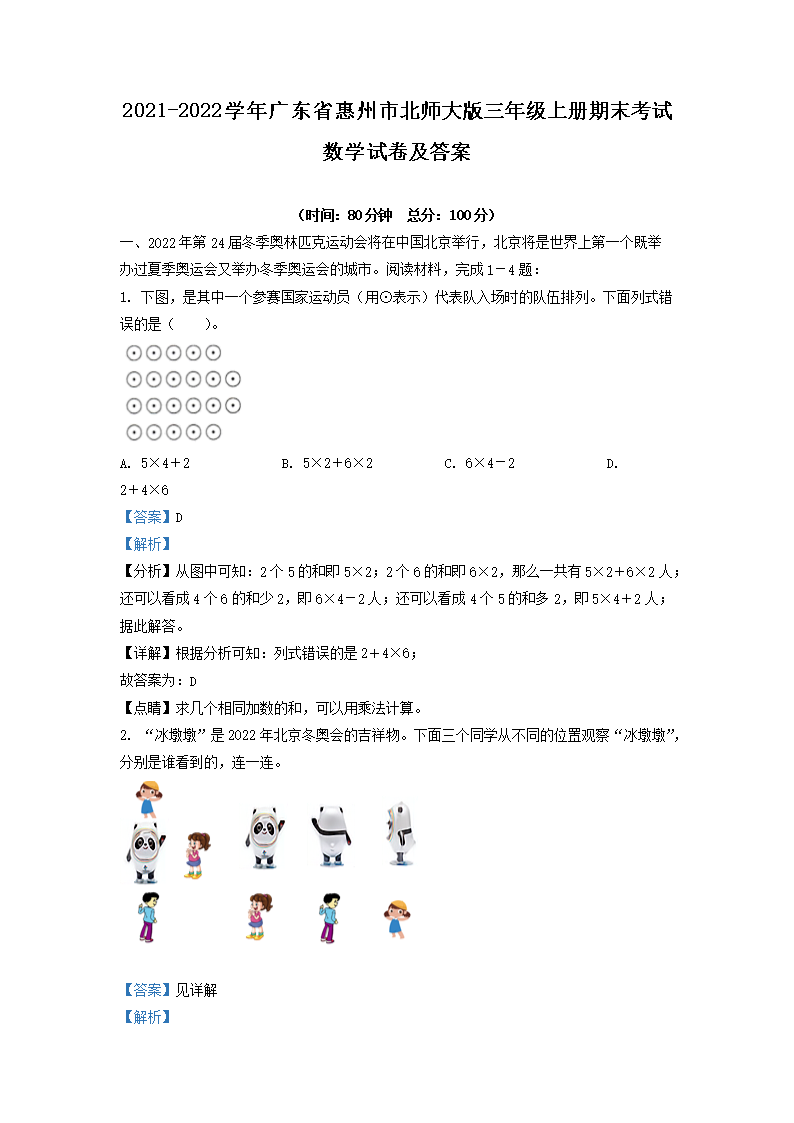 【文档预览】 文档大全网整理发布2021-2022学年广东省惠州市北师大版三年级上册期末考试数学试卷及答案(Word版),前五页预览如下: