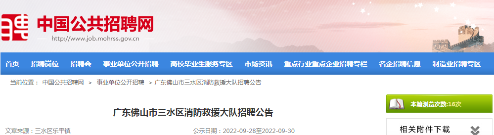 【#事业单位# 导语】2022年广东省佛山市三水区消防救援大队招聘公告已发布。©文档大全网现将招聘公告原文发布如下: