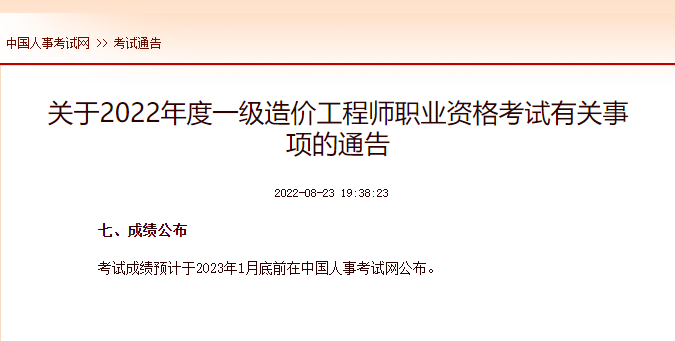 2022年一级造价工程师成绩什么时候出来?预计1月份公布12-12