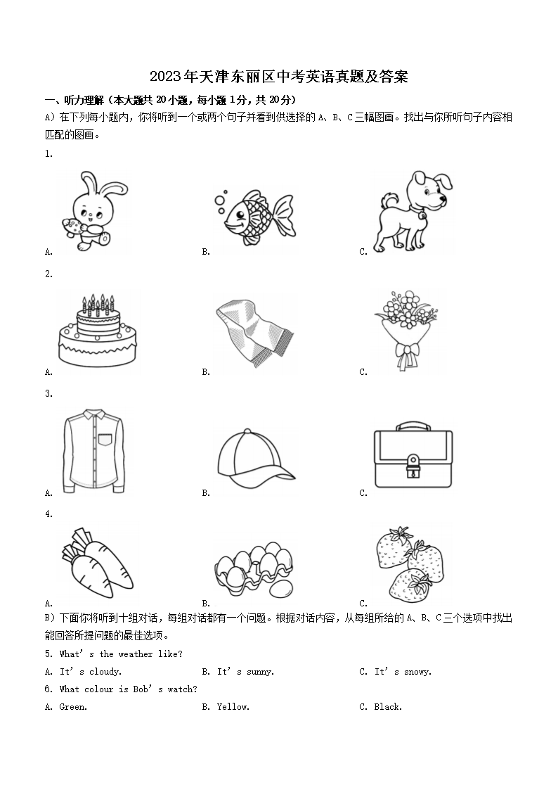 2023年天津东丽区中考英语真题及答案(Word版)06-21