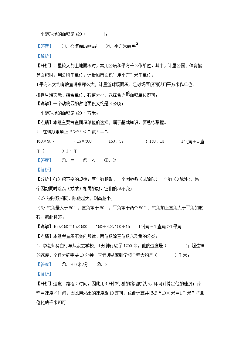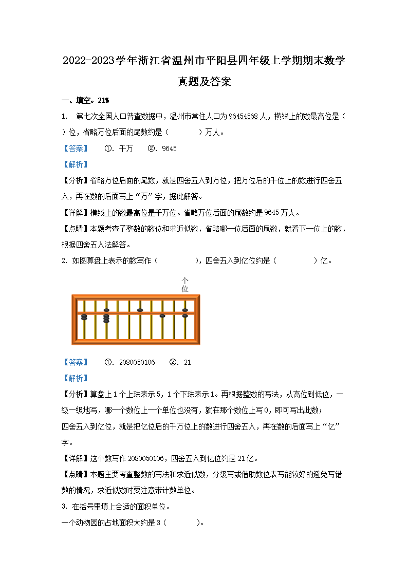 2022-2023学年浙江省温州市平阳县四年级上学期期末数学真题及答案(Word版)09-29