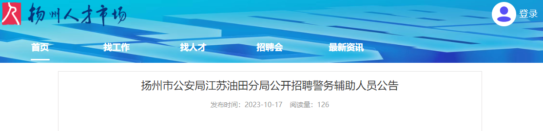 2023年江苏扬州市公安局江苏油田分局招聘警务辅助人员公告(1人)10-19