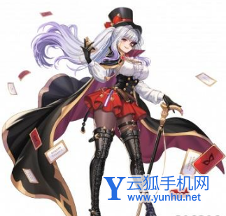 武器技能:原地跳跃一次,召唤5枚卡牌环绕自身,每0.5秒发射一枚,造成击飞异常