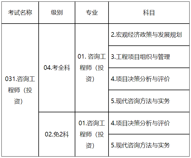 上述人员可免试部分科目,只参加《项目决策分析与评价》和《现代咨询方法与实务》2个科目的考试。