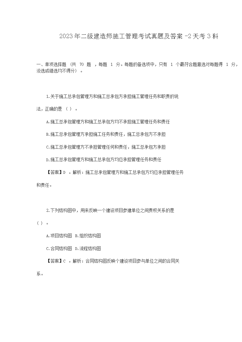 2023年二级建造师施工管理考试真题及答案-2天考3科(Word版)06-05