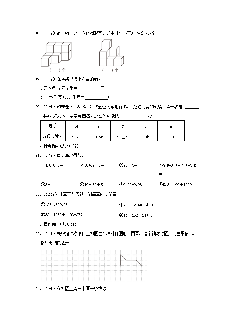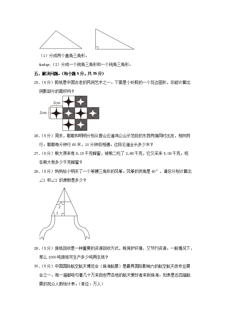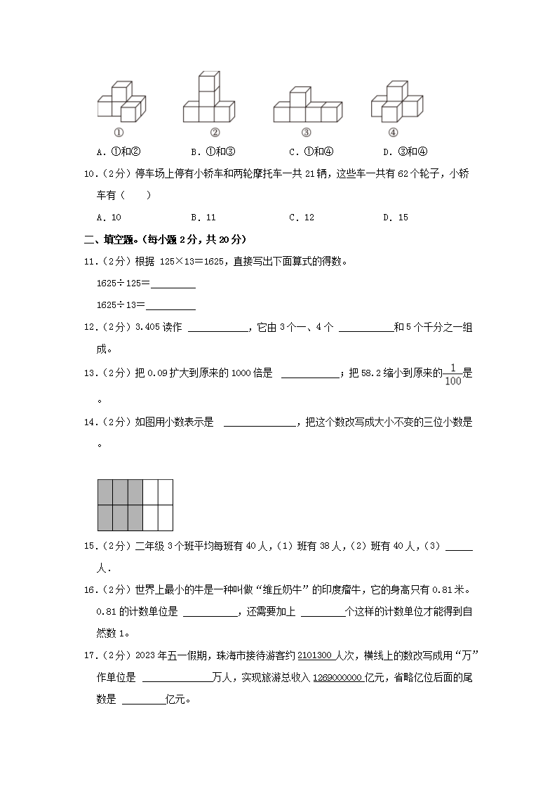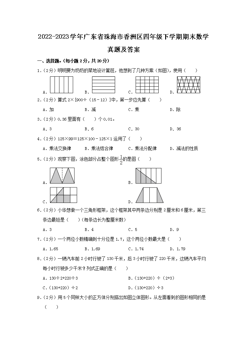 2022-2023学年广东省珠海市香洲区四年级下学期期末数学真题及答案(Word版)10-21