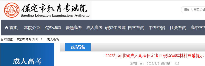 2023年成人高考河北保定考区现场审验材料温馨提示(审核时间9月7日至9日)09-08