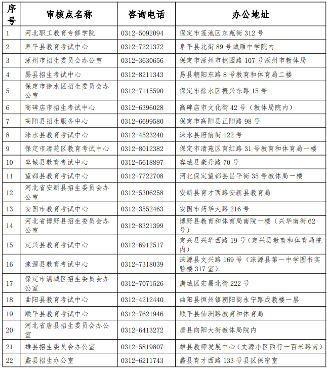 附件:保定各审核点信息