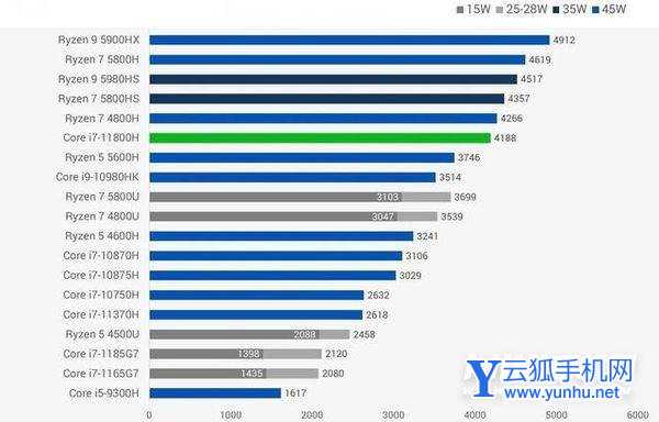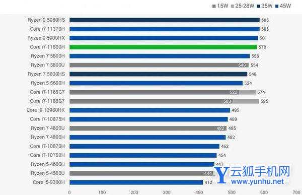 凭借Zen 3带来的IPC优势,5800H力压群雄。