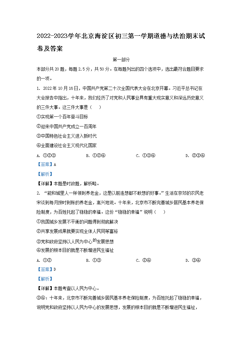 2022-2023学年北京海淀区初三第一学期道德与法治期末试卷及答案(Word版)08-02