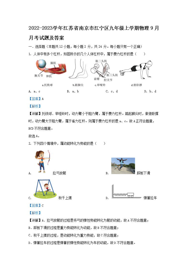 【文档预览】 文档大全网整理发布2022-2023学年江苏省南京市江宁区九年级上学期物理9月月考试题及答案(Word版),前五页预览如下: