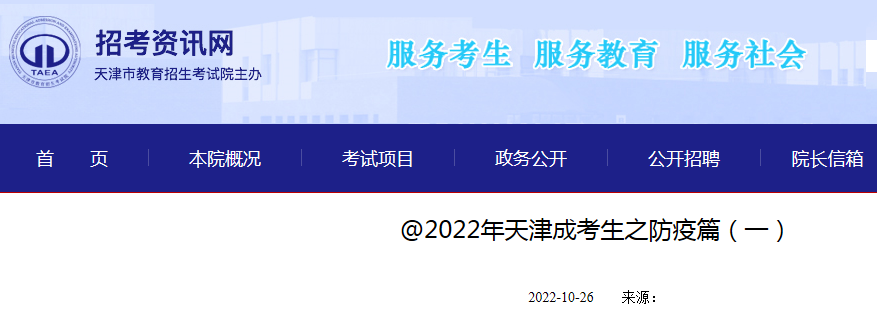 2.考生须至少于考前7天(10月29日前)登录“招考资讯网”(www.zhaokao.net)或“天津市教育招生考试院”微信公众号,下载《2022年天津市成人高考考生健康卡与安全考试书》(以下简称《健康卡》)和《流行病学调查表》(以下简称《流调表》),按规定如实填写,记录体温,签署安全考试书,并在第一场考试入场时交给监考人员。