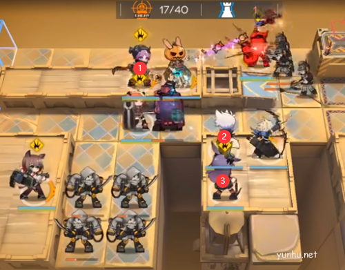 这里如果费用不足可以先下群狙打掉空降兵后再下奶盾。