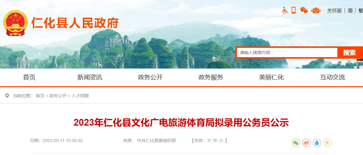 原文标题:2023年仁化县文化广电旅游体育局拟录用公务员公示