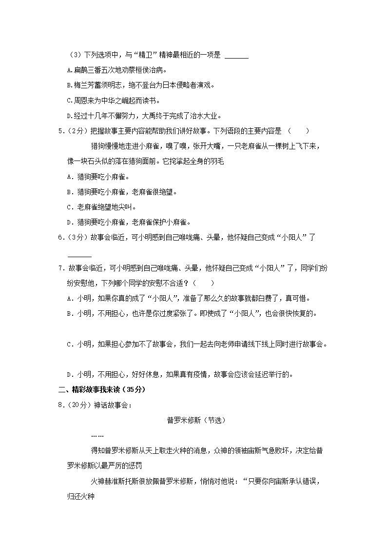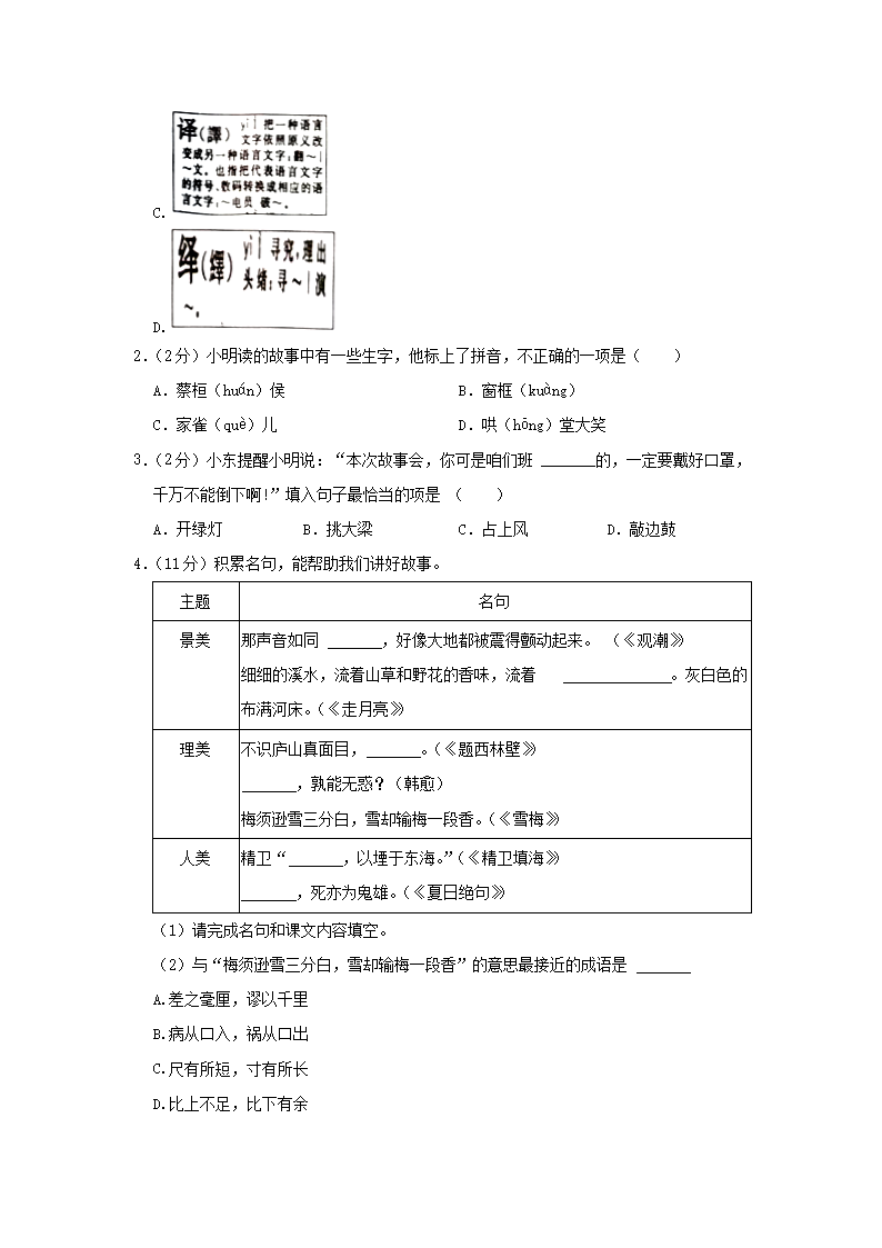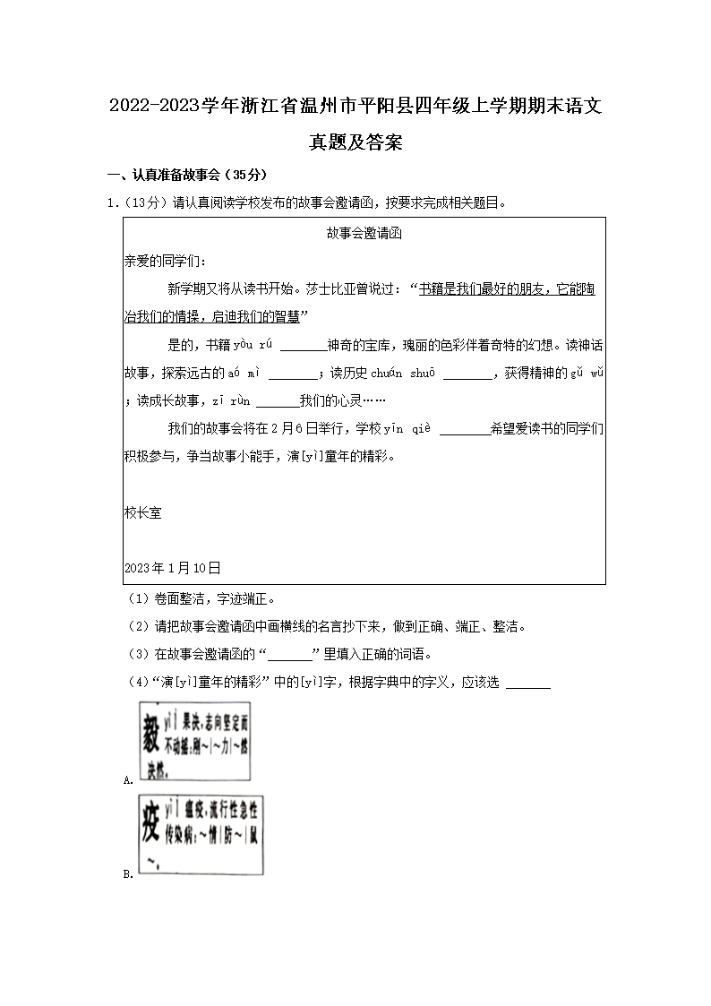 2022-2023学年浙江省温州市平阳县四年级上学期期末语文真题及答案(Word版)09-28