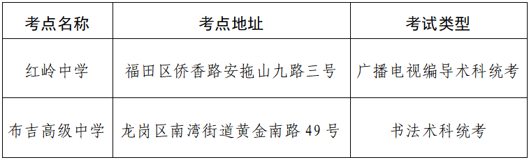 附件:广东省2023年普通高考书法术科统考和广播电视编导术科统考深圳考区考点安排表
